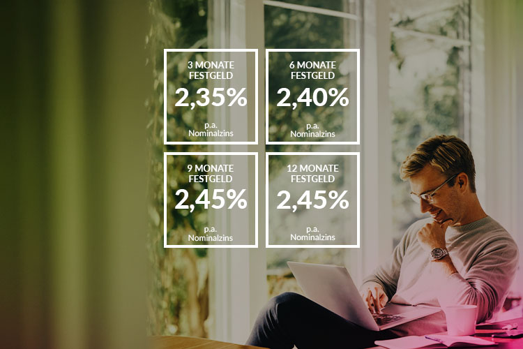 MIT EINER RENDITE VON 2,35% P.A. BIS ZU 2,45% P.A. UND EINER LAUFZEIT ZWISCHEN 3 UND 12 MONATEN ERHÄLT IHR ANLAGEHORIZONT DIE NOTWENDIGE SICHERHEIT. ERÖFFNEN SIE JETZT IHR SPARKONTO.